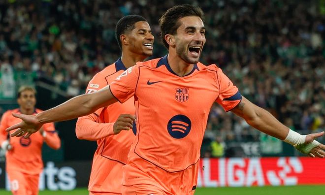 第25分鐘,巴爾德吉也來(lái)一腳側(cè)身凌空射門(mén),被對(duì)手解圍出去。6分鐘后,巴薩再次進(jìn)球。佩德里送出直傳球。巴爾德吉突入禁區(qū),大力抽射,皮球應(yīng)聲入網(wǎng)!第40分鐘,巴薩又進(jìn)球了!依然是費(fèi)蘭-托雷斯的進(jìn)球,他起腳遠(yuǎn)射,皮球被擋了一下發(fā)生折射鉆入球門(mén)右下角。費(fèi)蘭-托雷斯半場(chǎng)就完成帽子戲法。巴薩真是踢瘋了。半場(chǎng)結(jié)束,巴薩4-1領(lǐng)先皇家貝蒂斯。