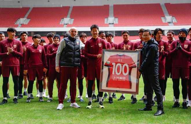 12月5日,海港全隊(duì)本賽季在主場訓(xùn)練場完成最后一堂訓(xùn)練課。訓(xùn)練前,主教練穆斯卡特召集全隊(duì)進(jìn)行戰(zhàn)術(shù)分析。隨后俱樂部黨總支書記、總經(jīng)理沙良昌為顏駿凌、徐新分別頒發(fā)代表俱樂部出場500場與100場紀(jì)念球衣,以表彰他們的貢獻(xiàn)——兩人均在11月4日的比賽中達(dá)成各自出場里程碑。